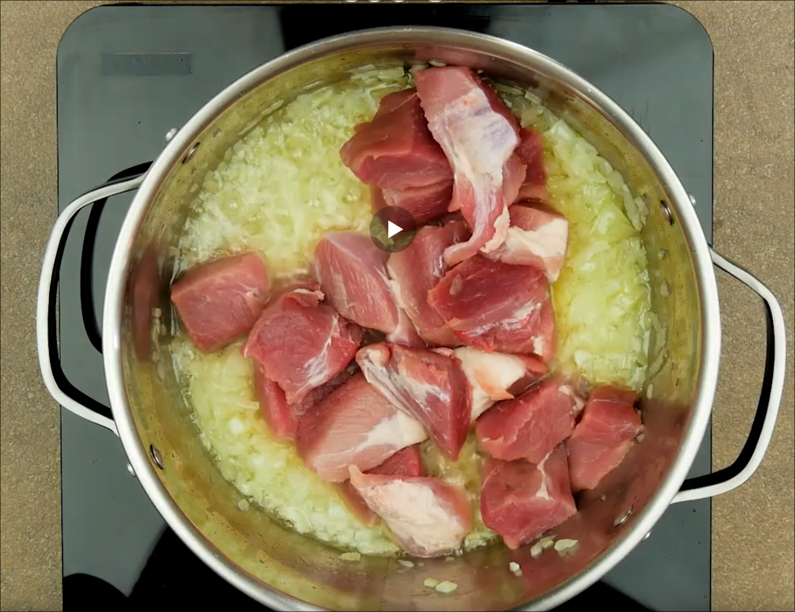 1. Vepřovou plec nebo krkovici nakrájíme na kostky o velikosti asi 2x2 cm.